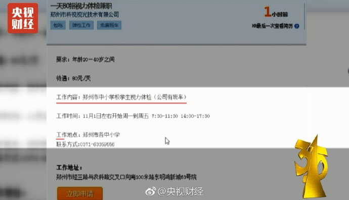 郑州科视视光公司“三无体检队”危害13万孩子的眼睛