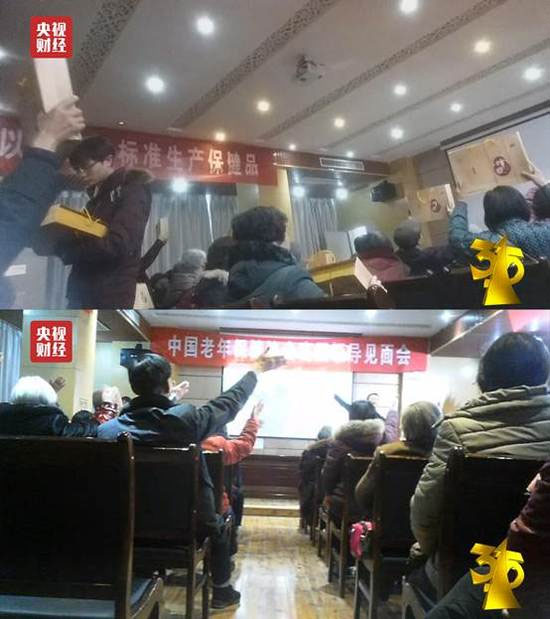 在全国各地,每天都有很多向老年人推销各种各样保健品的会议,很多老人因此散尽家财,上当受骗。由此,央视记者日前打入武汉乐百龄生物科技公司、安徽润九生物技术公司、湖北国创伟业生物科技公司等内部进行了深入调查,曝光了这一场精心设计的骗局。